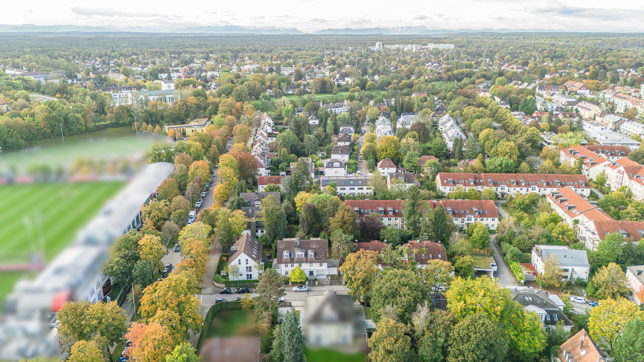 Die Nachbarschaft ist geprägt durch gepflegte Einfamilien-u. Doppelhäuser sowie Eigentumswohnanlagen in parkähnlichen Grundstücken mit prächtigem altem Baumbestand.