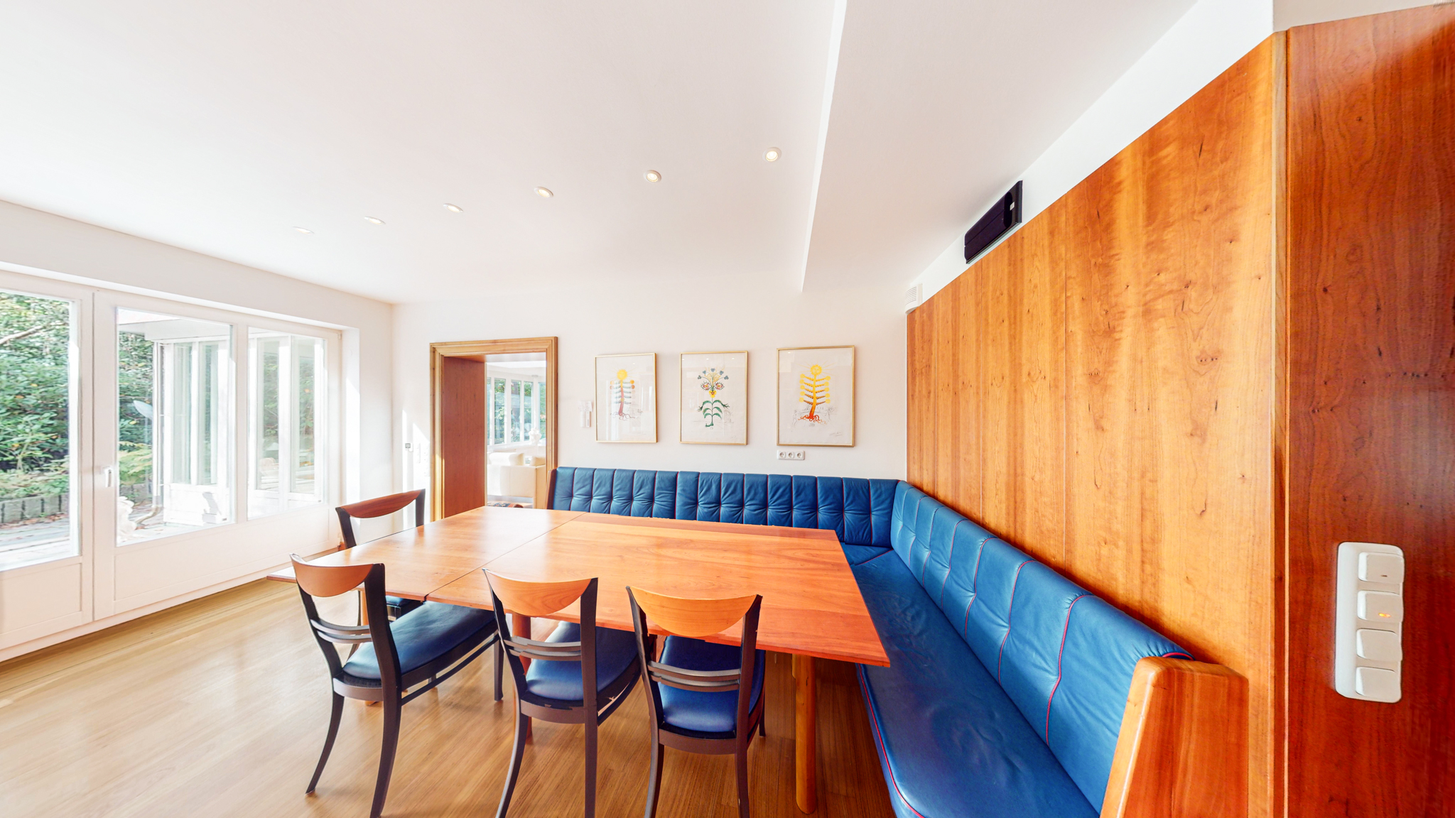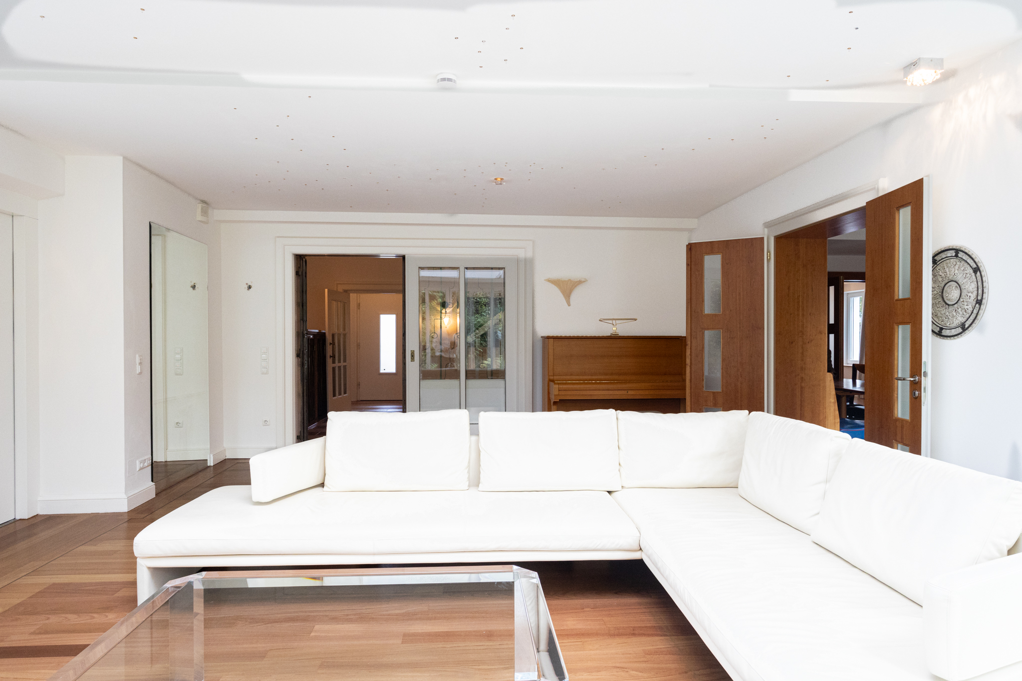 Während das Anwesen äußerlich bewusst zurückhaltende Eleganz ausstrahlt, offenbaren sich luxuriöse Großzügigkeit und edle Ausstattung im Inneren des Hauses.