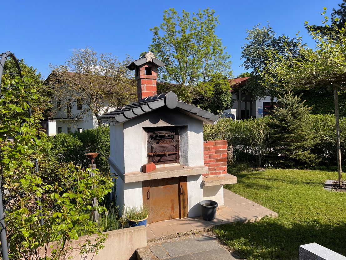 – Traditioneller freistehender Brotbackofen vor der Terrasse (auch geeignet zum Pizzabacken und Räuchern)