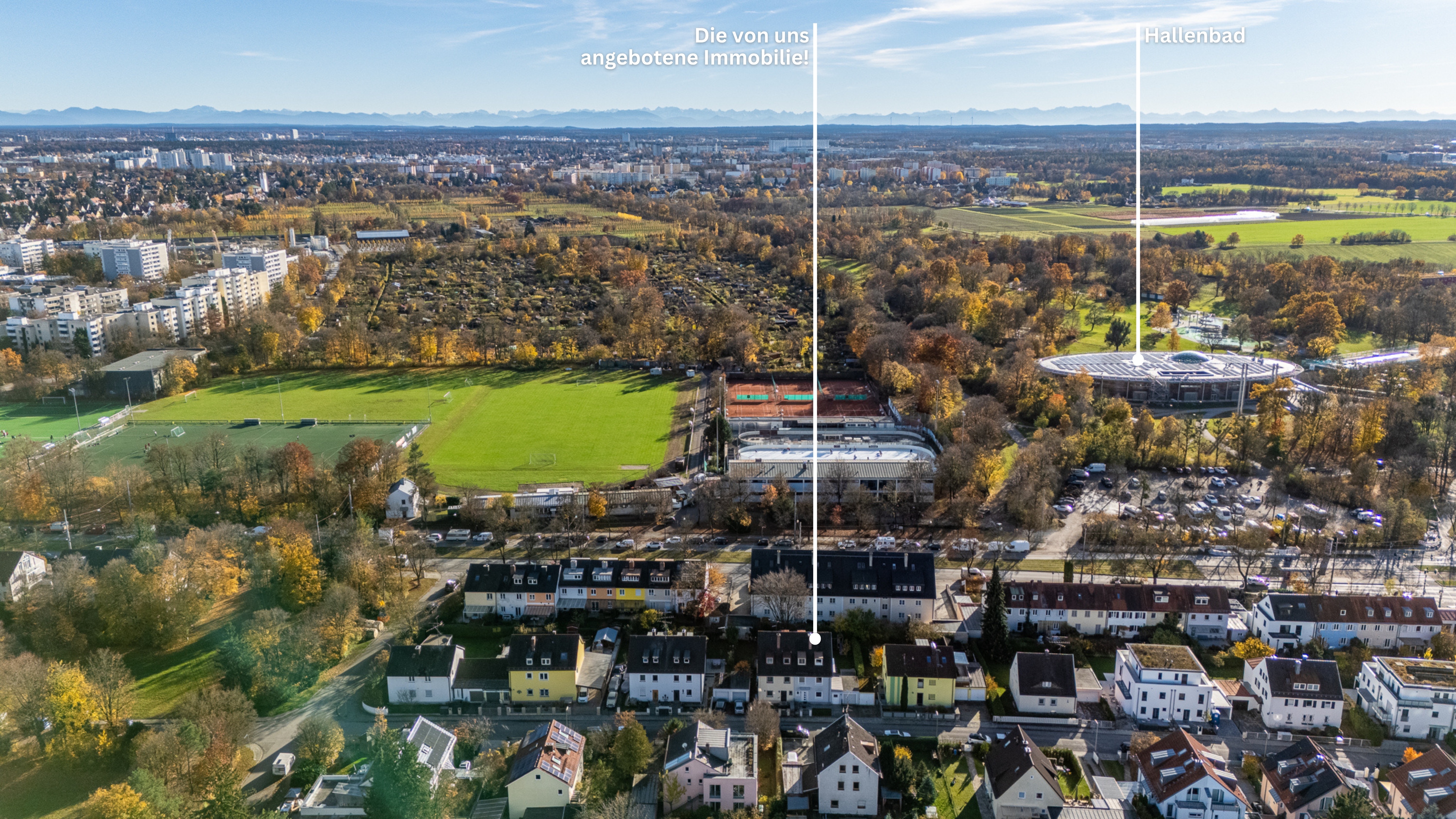 Die Doppelhaushälfte liegt im attraktiven Österreicherviertel des Münchner Stadtteils Pasing, welcher im westlichen Teil der bayerischen Landeshauptstadt liegt. Pasing ist bekannt für seine gute Infrastruktur mit zahlreichen Einkaufsmöglichkeiten, Restaurants und Cafés. Zudem punktet der Stadtteil mit seiner Nähe zur idyllischen Würm und dem Schlosspark Nymphenburg, die zu ausgedehnten Spaziergängen und erholsamen Stunden in der Natur einladen.