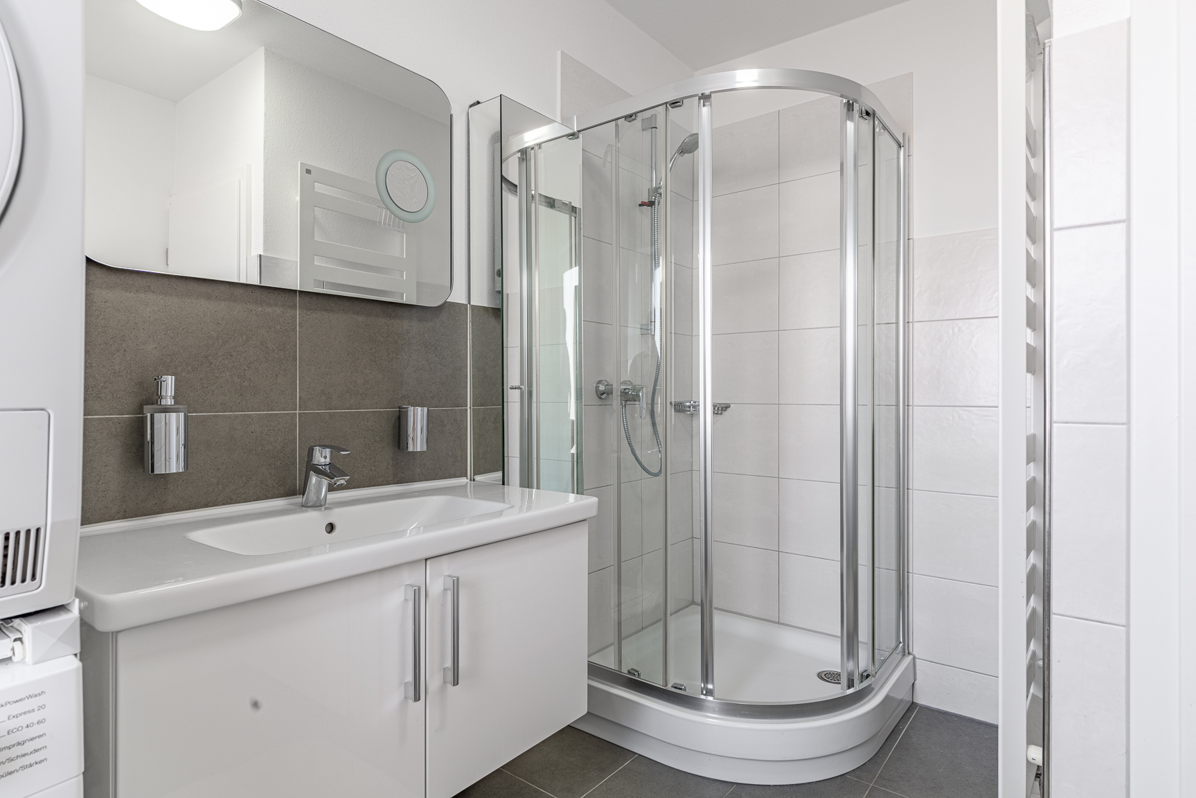 Dies beinhaltet u.a. 4 Badezimmer (3x Dusche, 1x Badewanne) und 2 komplette Einbauküchen.