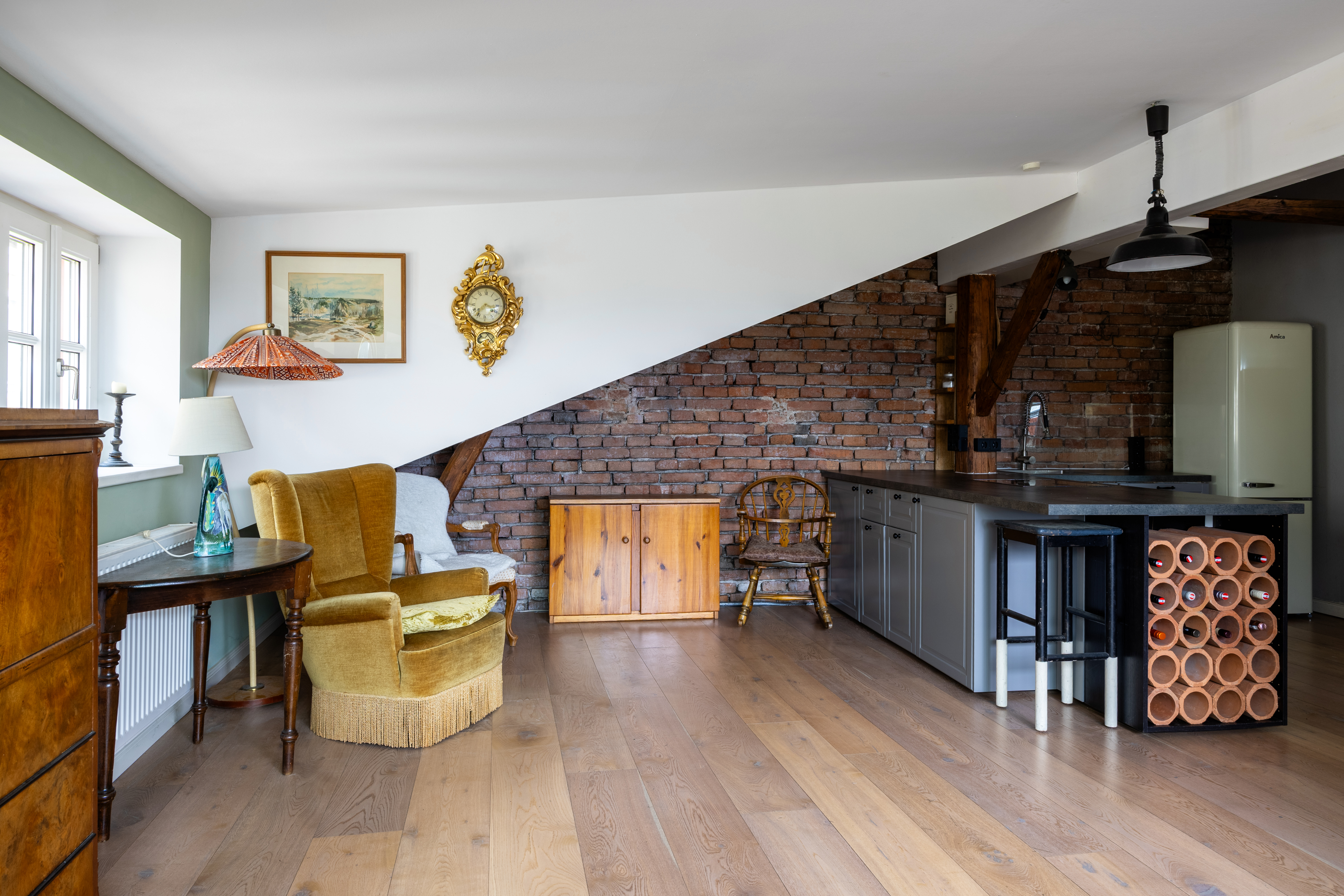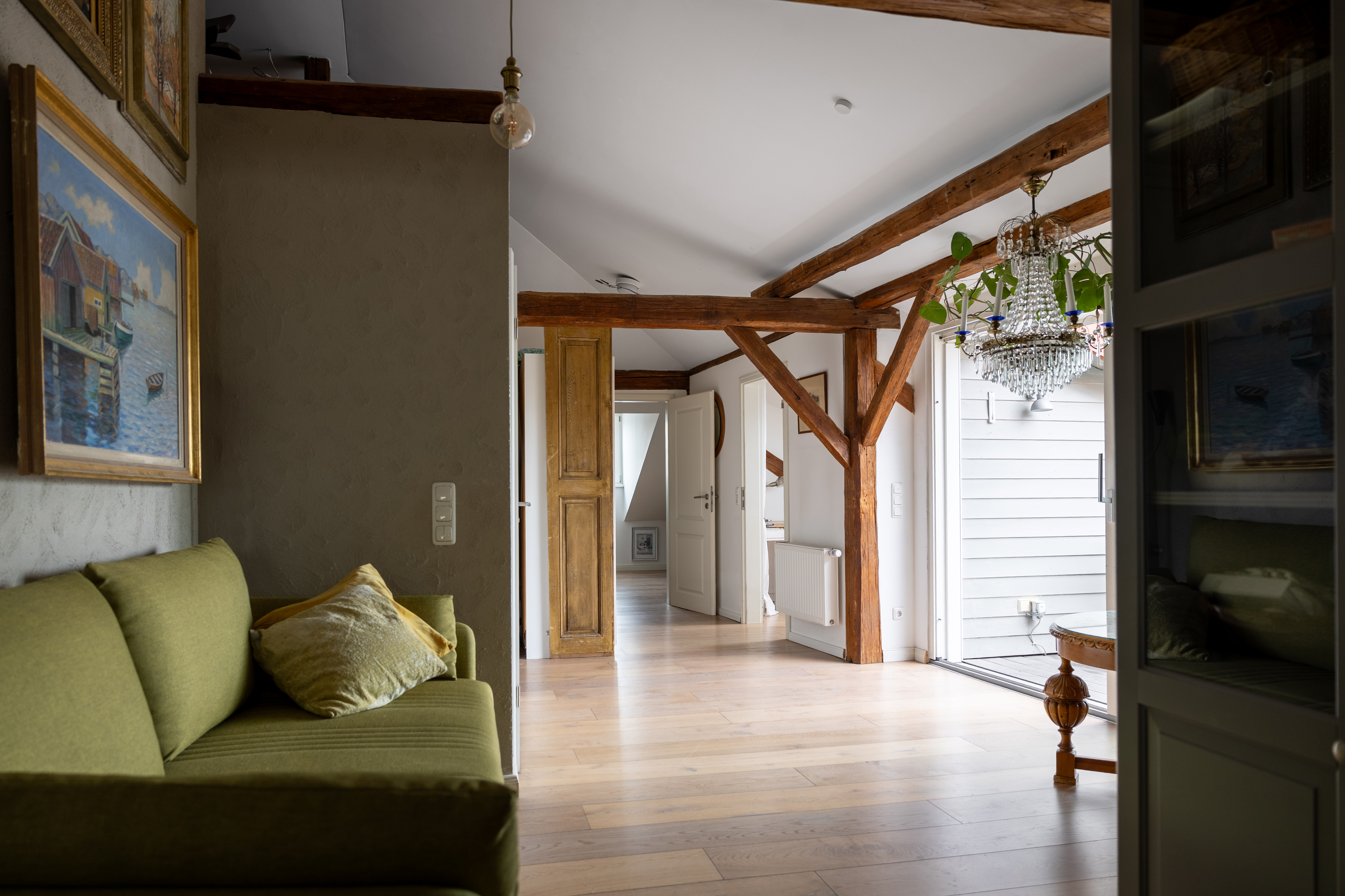 2014 wurde der ursprüngliche Dachboden im Rahmen einer umfassenden Kernsanierung zu einer modernen Wohnung ausgebaut. Dabei wurde nicht das gesamte Dach neu errichtet und hochwertig isoliert, sondern auch die gesamte Wohnfläche von Grund auf neu gestaltet.