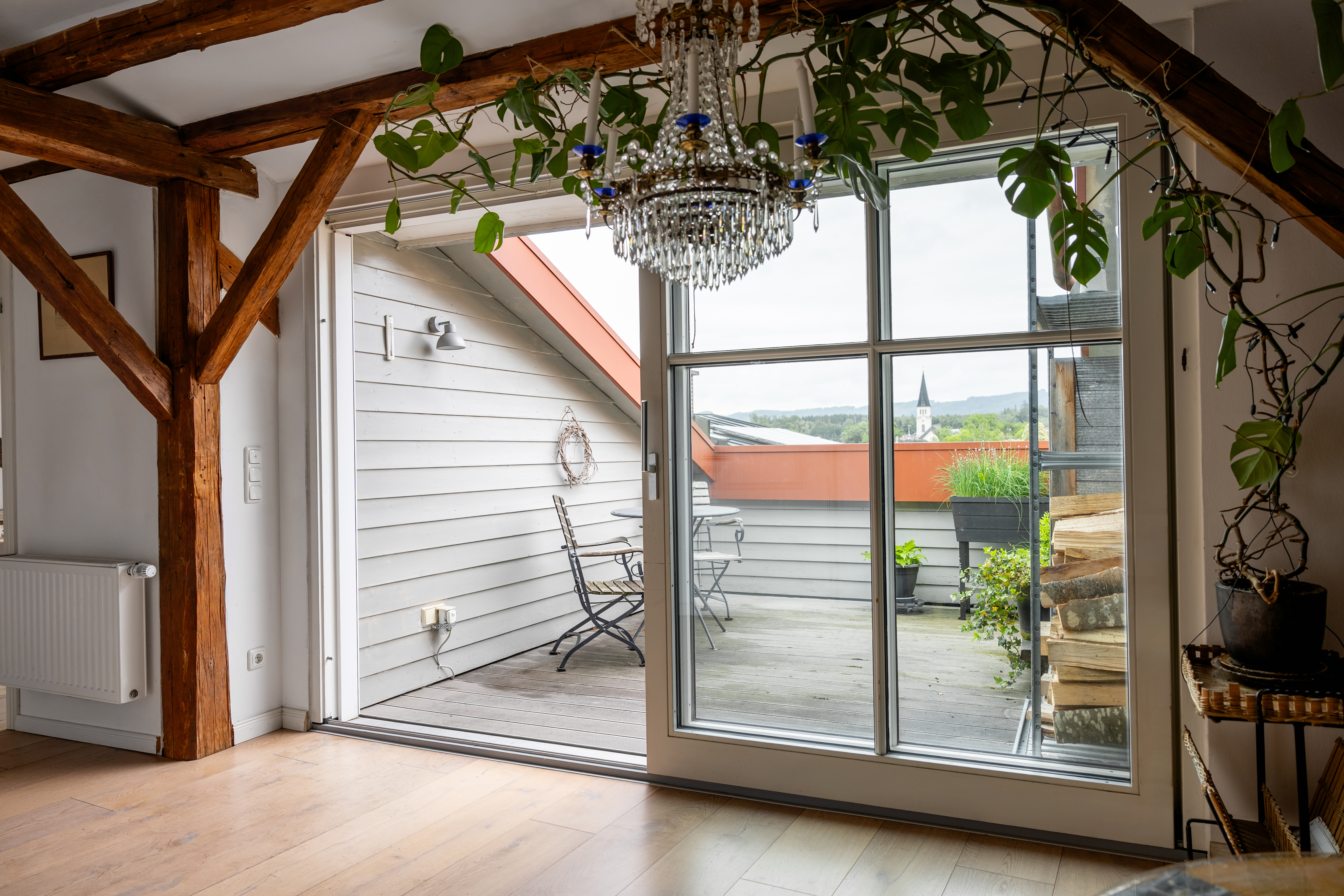 Die Bereiche Kochen / Essen sowie Wohnen, verfügen jeweils über eine separate, Dachterrasse. Hier genießen Sie nicht nur Sonne und Weitblick über den Dächern der Altstadt, sondern gemütliche Sommerabende mit der Familie und Freunden sind hier garantiert. Ob Grillfeiern oder einfach nur ein Glas Wein unterm Sternenhimmel – hier lässt man den Tag ausklingen.