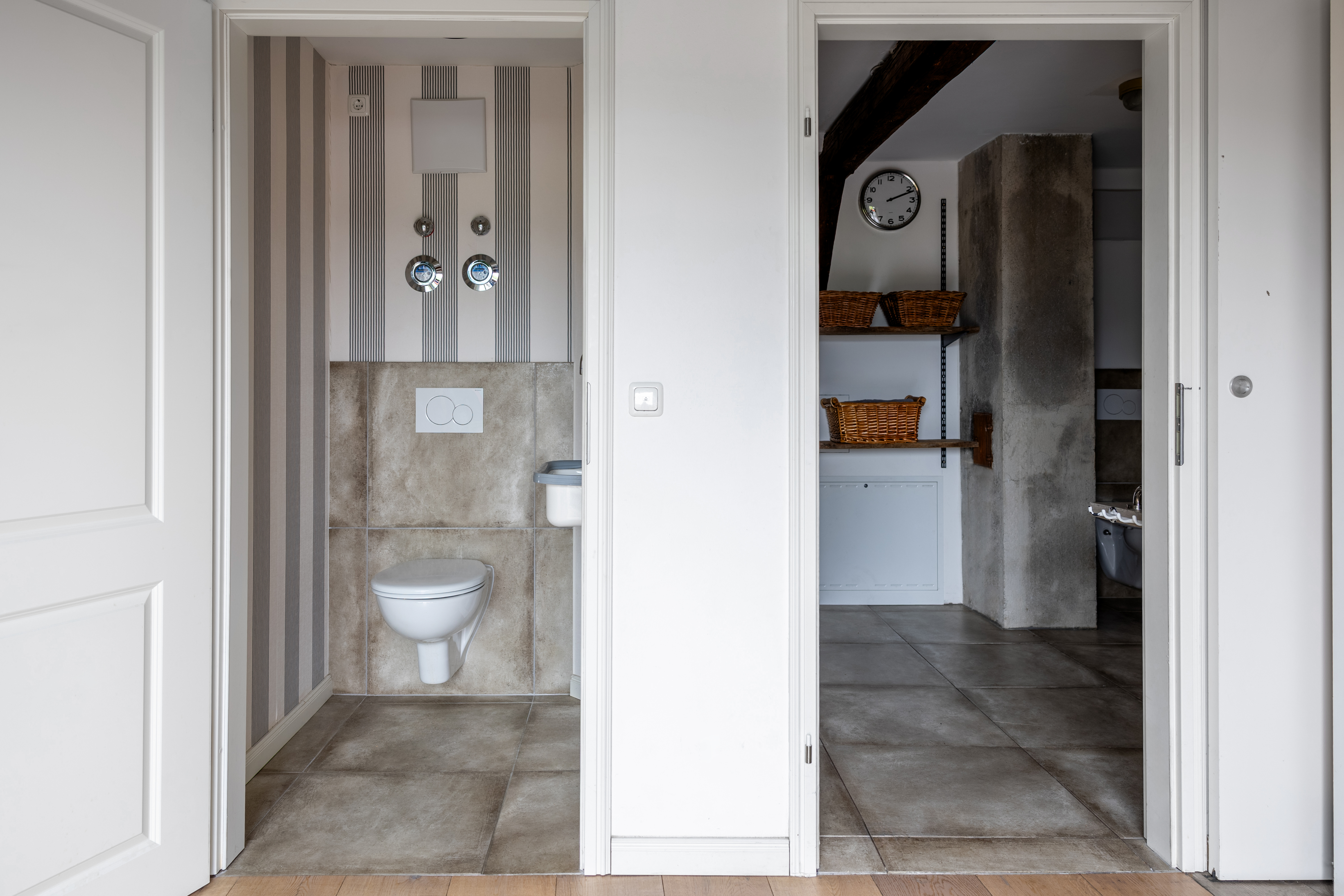 Das Badezimmer ist mit einer begehbaren, offenen Dusche ausgestattet. Ein zusätzliches Gäste-WC bietet praktischen Komfort im Alltag.