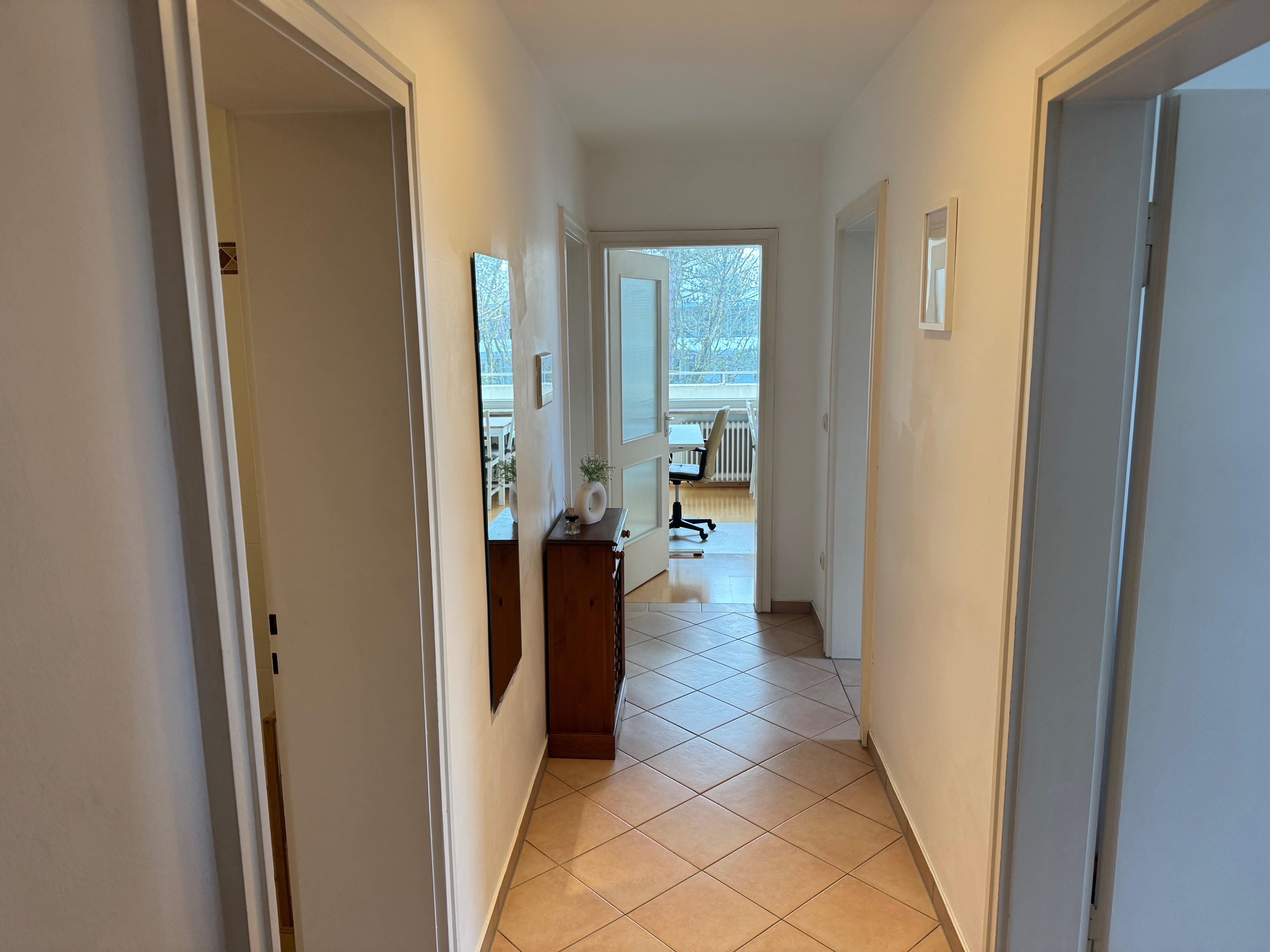 Der nach Westen ausgerichtete Balkon bietet Platz für entspannte Stunden im Freien und lädt dazu ein, die warmen Sommerabende zu genießen. Die Räumlichkeiten sind hell und freundlich gestaltet und bieten ausreichend Platz für individuelle Gestaltungsmöglichkeiten.