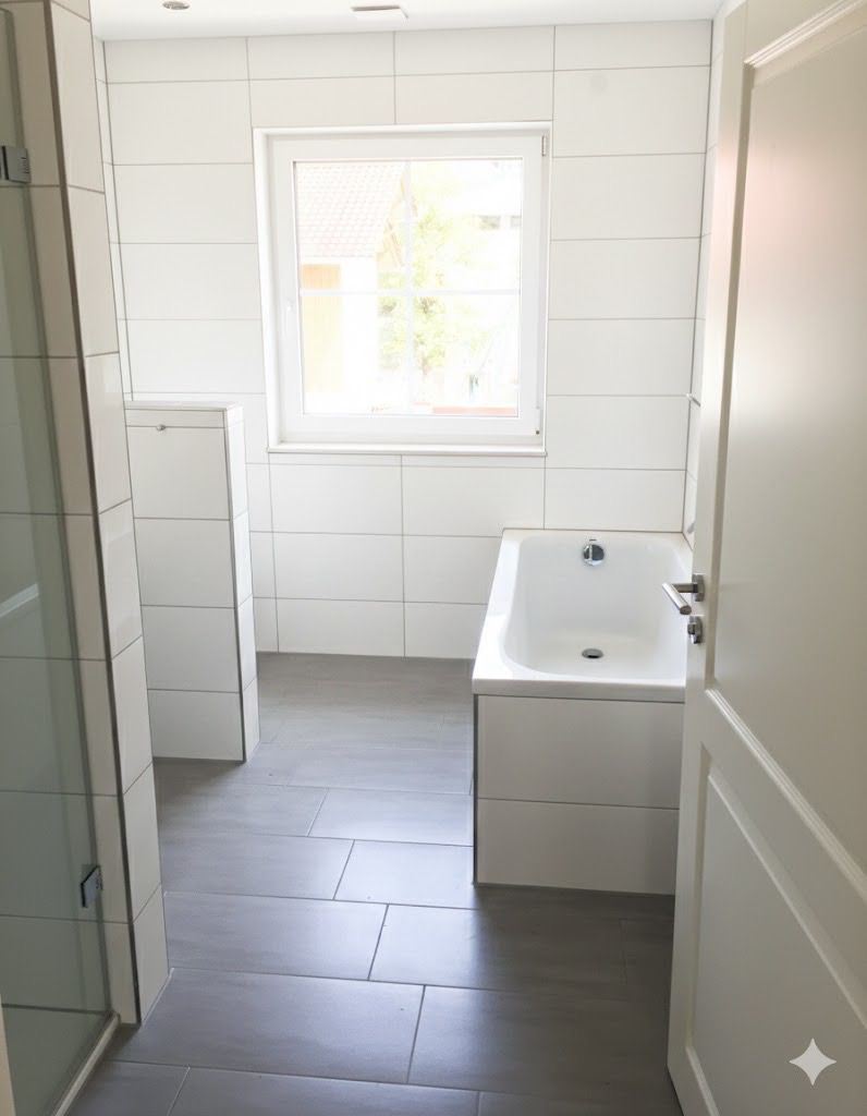 - Ausstattung des Bades Badewanne Dusche Fenster