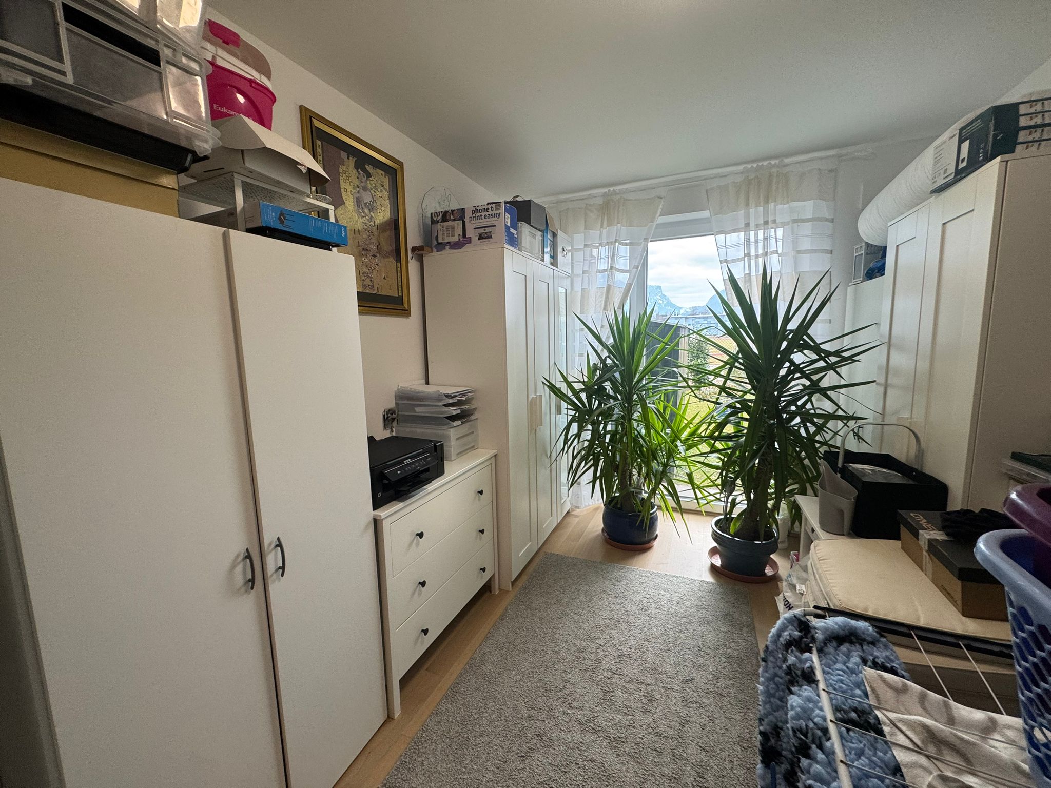 Der liebevoll gestaltete, vollständig eingefriedete Garten erweitert den Wohnraum ins Freie und schafft einen privaten Rückzugsort inmitten der Natur. Besonders hervorzuheben ist der unverbaubare Panoramablick auf die umliegende Berglandschaft, der der Wohnung eine einzigartige Wohnqualität verleiht. Die bodentiefen Fenster im Kinder- und Elternschlafzimmer ermöglichen einen direkten Zugang zum Garten und sorgen gleichzeitig für lichtdurchflutete Räume mit einer offenen, freundlichen Atmosphäre.